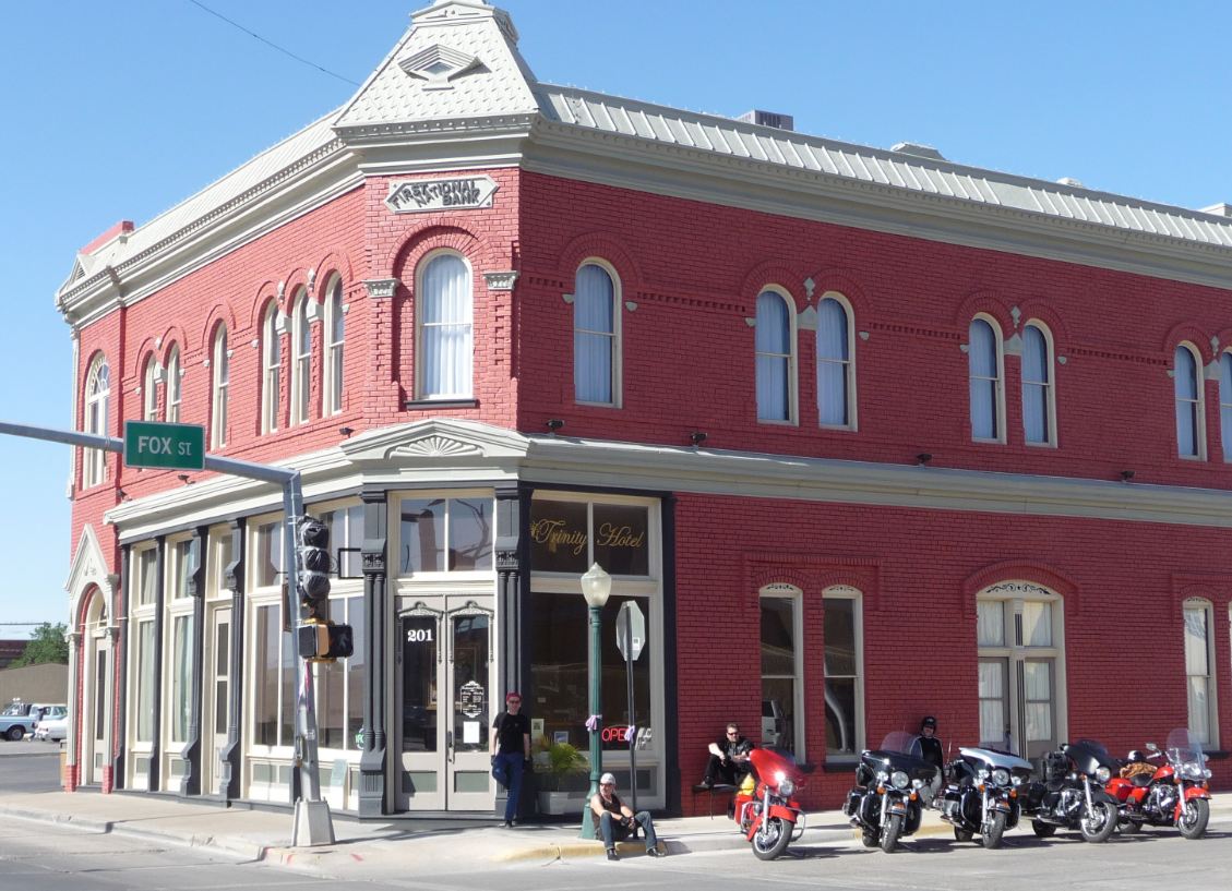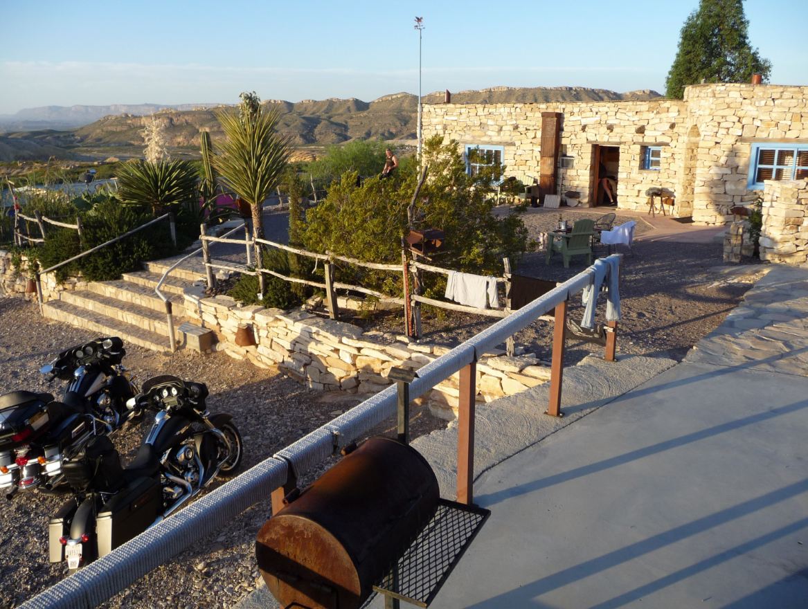 | notre hôtel, dans une ville fantôme, surplombant la plaine du Rio Grande (en face, c'est le Mexique) |