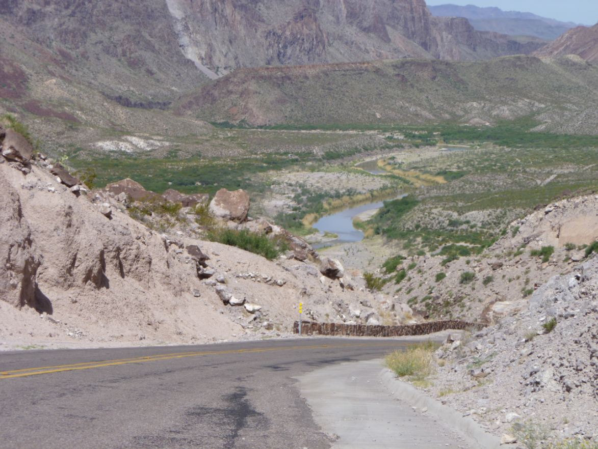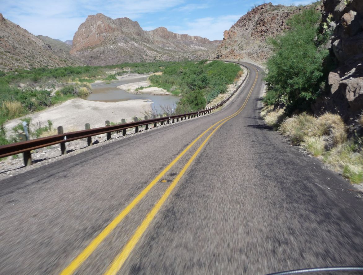 Considérée comme l'une des plus belles routes des USA qui longe le Rio Grande à quelques centaines de mètres du Mexique. |