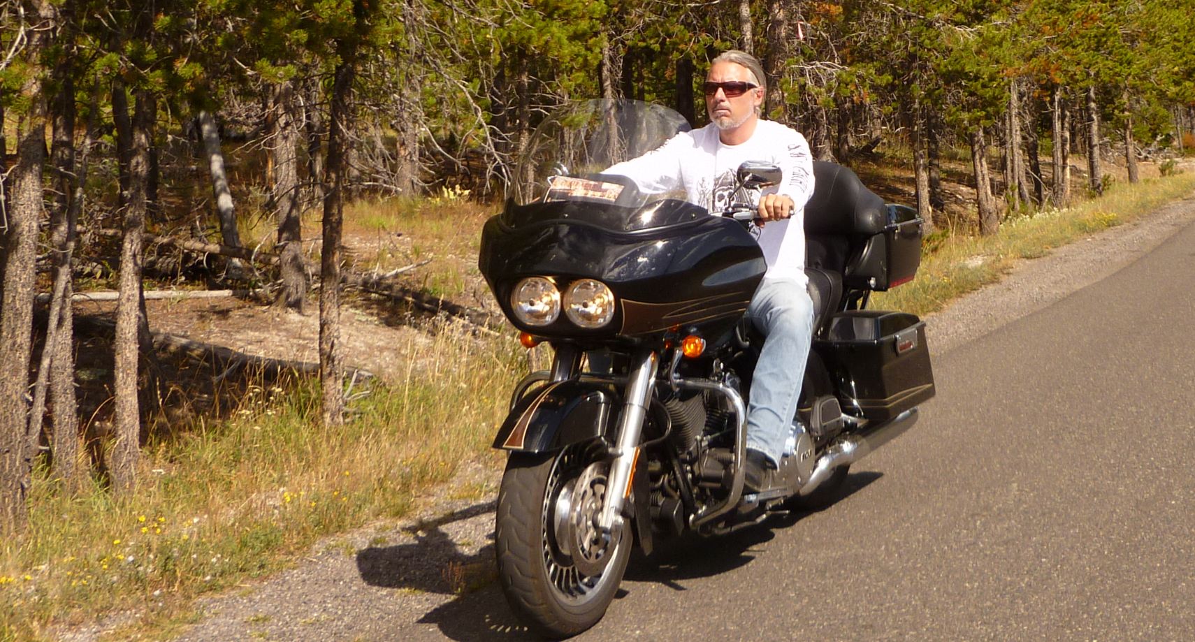 Une photo du "road captain", pas toujours content, mais qui a fait du bon boulot et qui a permis que l'aventure soit une réussite une fois de plus ! Bravo Phil, et continue de rouler devant, mais pas trop loin de nous quand même.