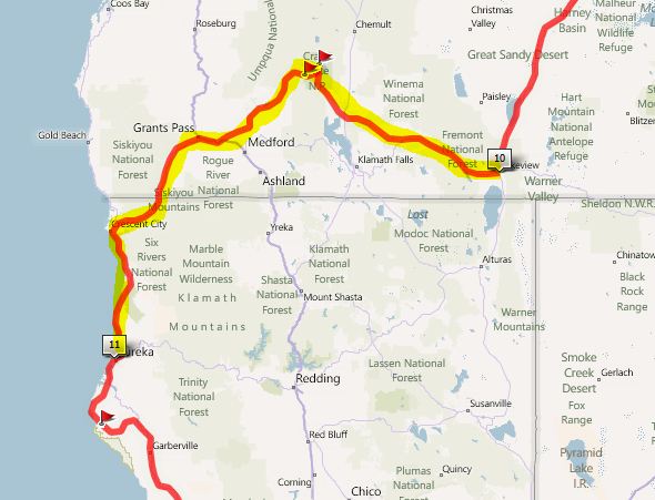 De Lakeview (OR) à Eureka (CA) 430 miles
