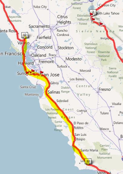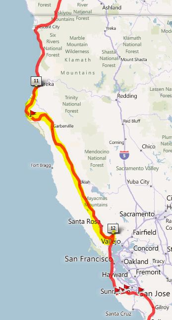De à Eureka (CA) à Sonoma (CA) 348 miles