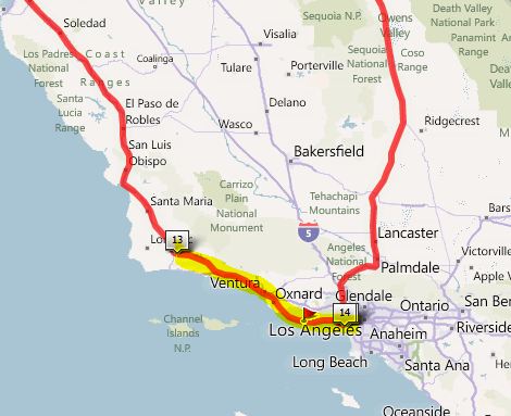 De Sonoma (CA) à Solvang (CA), 350 miles