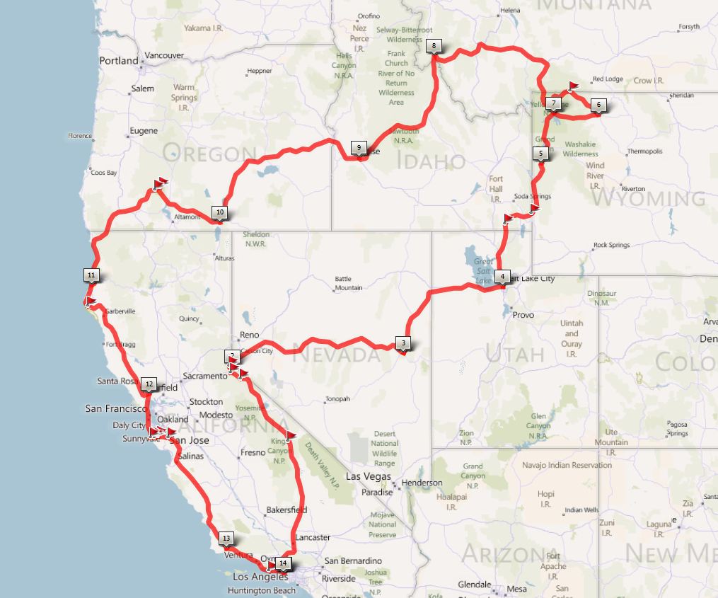 Nous arrivons tranquillement au Courtyard Marriot vers 15h30. Il ne reste plus qu’à monter les bagages dans les chambres et à rendre les motos après un dernier check de la part de Leo. Les motos n’ont rien eu durant ces 7'000 kilomètres. Seul Dick garde sa moto car il part demain pour Las Vegas où l’attend Béatrice.
