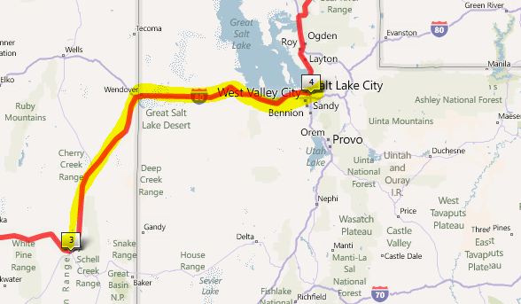 De Ely, NV à Salt Lake City, UT, 272 miles
