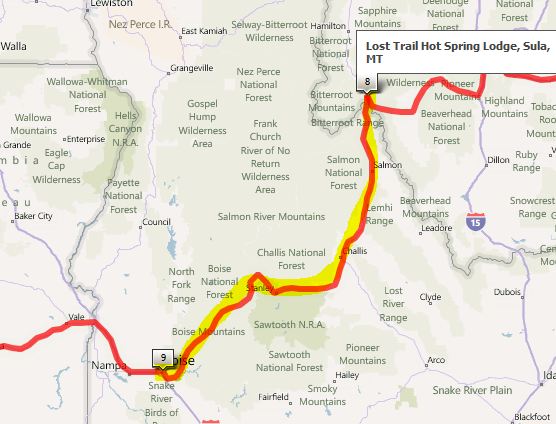 De Lost Trail Pass (MT) à Boise (ID) 350 miles