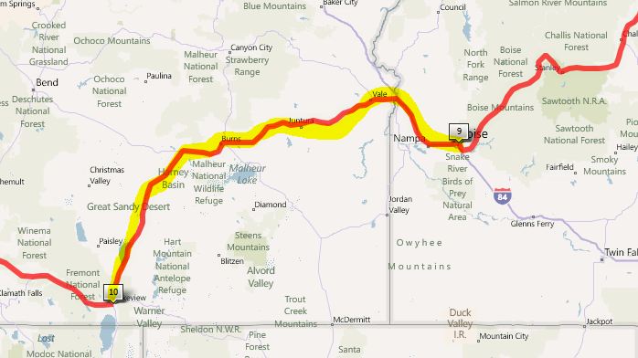 De Boise, ID à Lakeview, OR 329 ou 450 miles, selon les versions