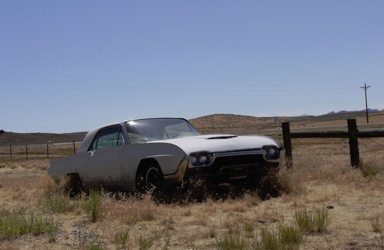 Nous déjeunons de burgers et de bière et repartons comme des forcenés sur cette route démente. Ici et là, des tornades de chaleur se forment. On franchit le col de Mount Airy Mesa. Bref arrêt à Austin pour faire le plein. Par ici passait le fameux Pony Express, détrôné par le télégraphe après 18 mois d’existence…