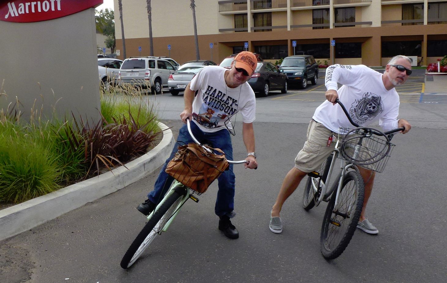 Empruntant des vélos à Leo, qui s’occupe des locations au sein de la société « Route 66 Riders », nous pédalons en direction de Venice dans l’après-midi, heureux de se dégourdir muscles et articulations après ce très long voyage en avion.