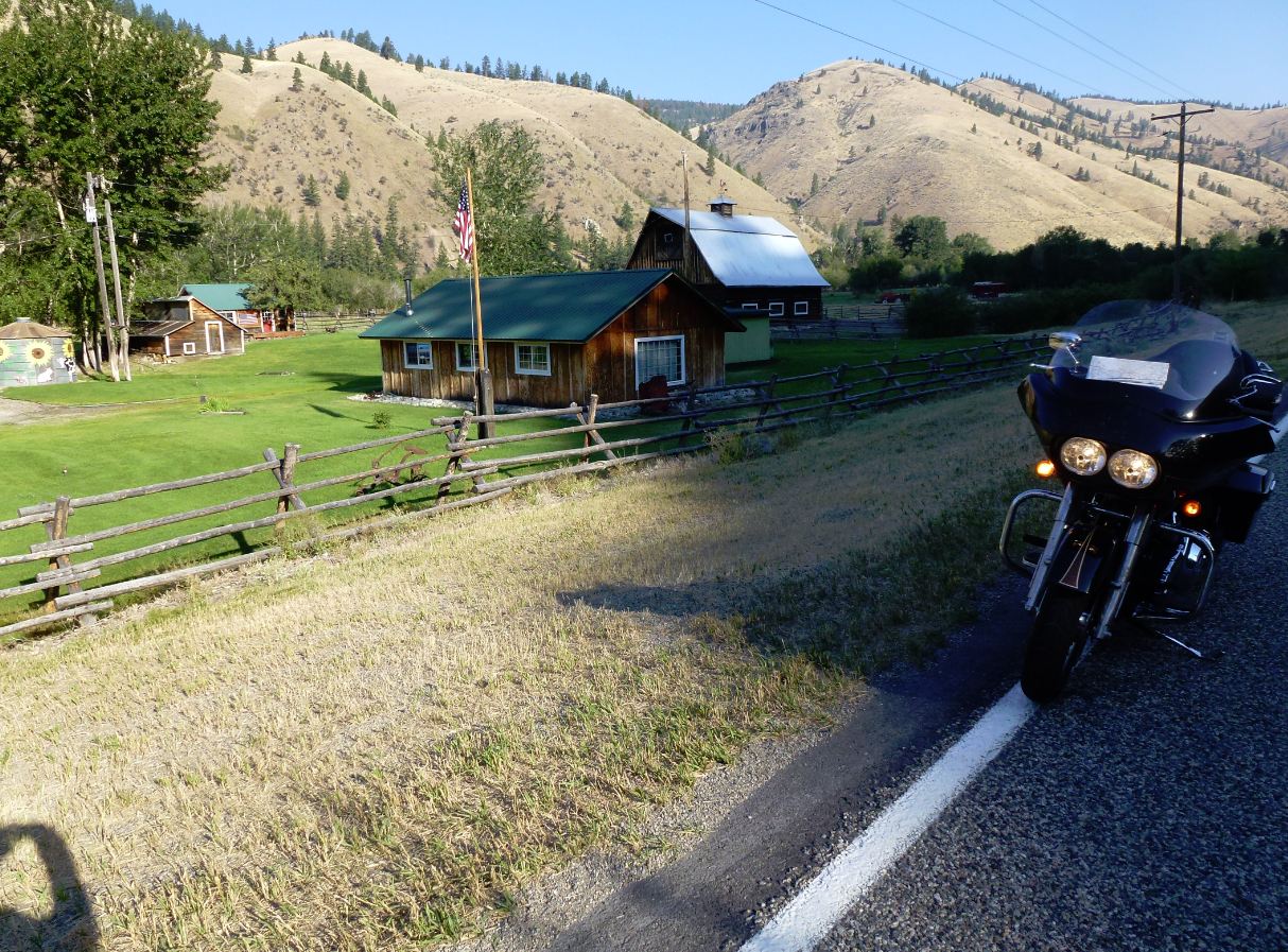 Lowman est une ville presque morte. Tellement même, que la pompe à essence est à vendre. Comme les réservoirs sont presque vide, nous ne prenons pas le risque de voir plus loin si on peut en trouver et remontons de quelques miles au New Haven Café et station. Le plein fait, nous nous occupons de nos estomacs. Fred, en cuisine, quatrième mari de la serveuse, nous confectionne d’excellents burgers tandis que sa femme nous conte leurs exploits de chasse : loup géant, grizzli et moose sont accrochés à leur tableau de chasse.