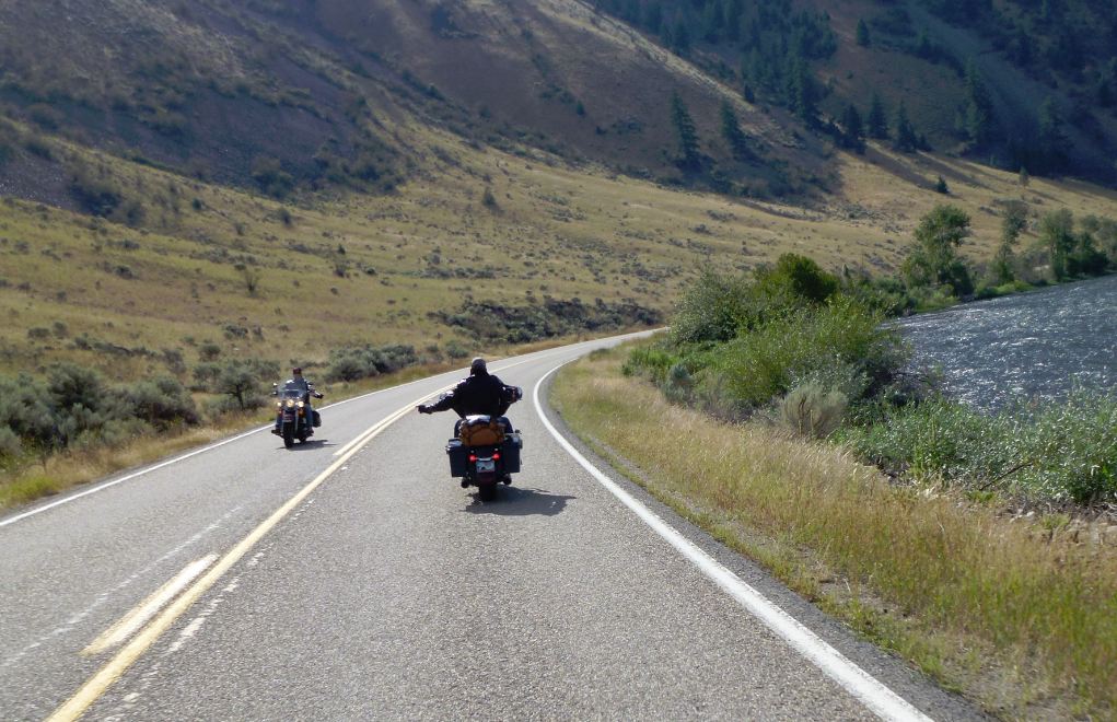 Deux motards tirant des remorques passent sur la route principale. Depuis quelques jours, nous croisons plus souvent des bikers isolés ou en petit groupes de 2 ou 3.
