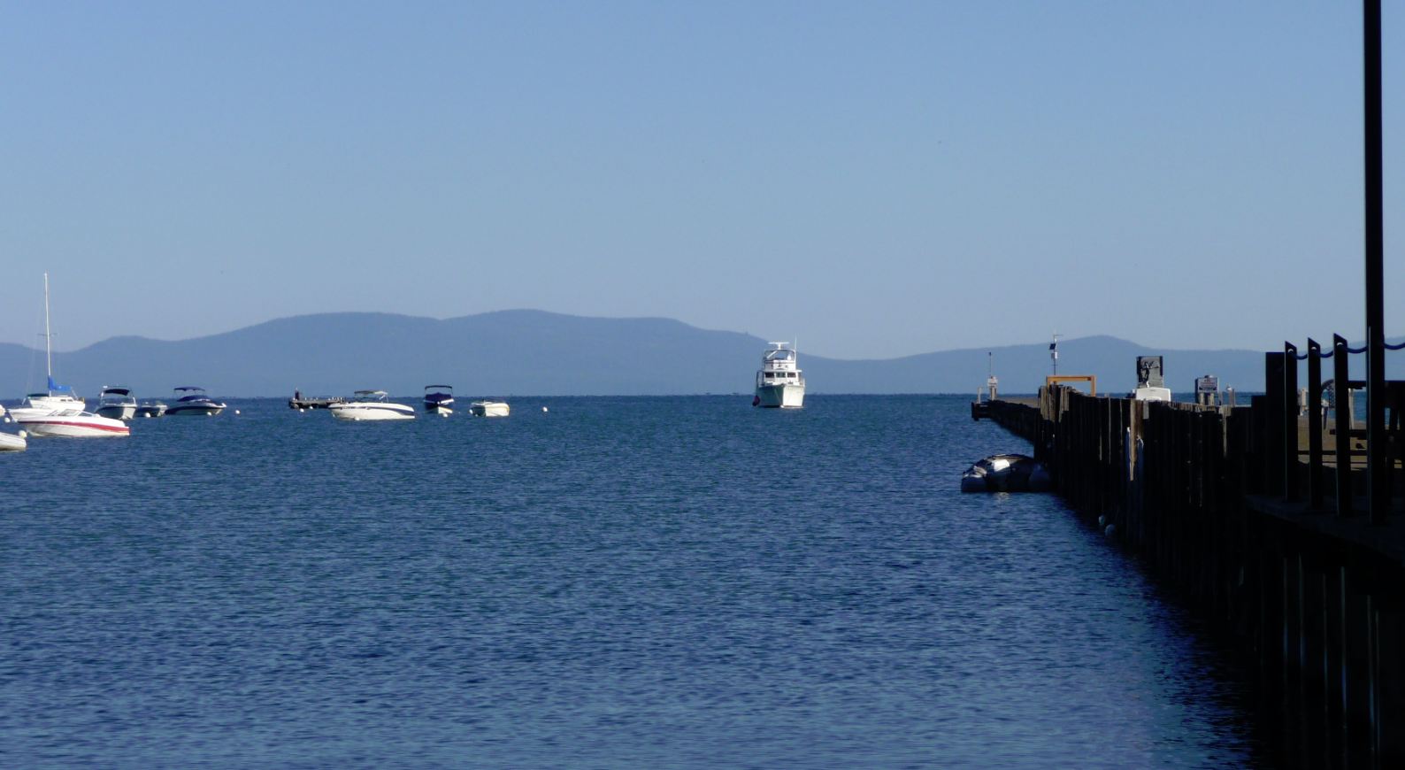 C’est ensuite la montée vers Devil’s gate Pass, à plus de 2500 mètres, absorbant un dénivelé de 1000 mètres sans un seul virage et la descente vers Topaz Lake où nous tournons à gauche sur la 89. Nous franchissons alors successivement Monitor Pass et Luther Pass avant d’atteindre South Lake Tahoe vers 19 heures, au terme d’une étape de 473 miles, soit 780 km. C’est un peu fourbus tout de même que nous prenons des chambres au Best Western Timber Cove Lodge. Apéro au bord du lac dans les couleurs rose orange d’un coucher de soleil très kitsch avant d’aller dîner au Riva grill. Au lit à minuit !