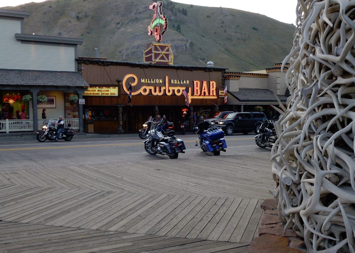 Nous nous réveillons tardivement car l’étape du jour est petite: il s’agit de retourner dans le Yellowstone. Autant dire que nous pouvons flâner un peu ! Nous traversons la ville pour aller déjeuner chez Granny’s, un diner repéré par Phil qui est allé laver sa bécane un peu plus tôt. Omelettes, eggs and bacon, jus d’orange et café lavasse : voilà de quoi nous caler pour un moment. Es autochtones sont très gentils et serviables mais d’esprit assez conservateur. Leur sens de l’humour n’est également pas le même que le nôtre et comme ils possèdent tous une arme, nous n’insistons pas !