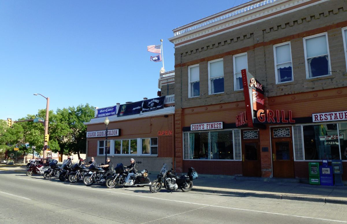 C’est de nouveau des ranches qui s’égrènent le long de la route aux abords du Buffalo Bill Reservoir et soudain la route redevient plate et la petite ville de Cody apparaît. Nous y entrons vers 17h30 et allons immédiatement nous désaltérer chez Irma, vaste saloon. Nous posons ensuite nos sacs au Best Western et allons plonger dans la piscine pour un bain rafraîchissant dans la brise de fin de journée.