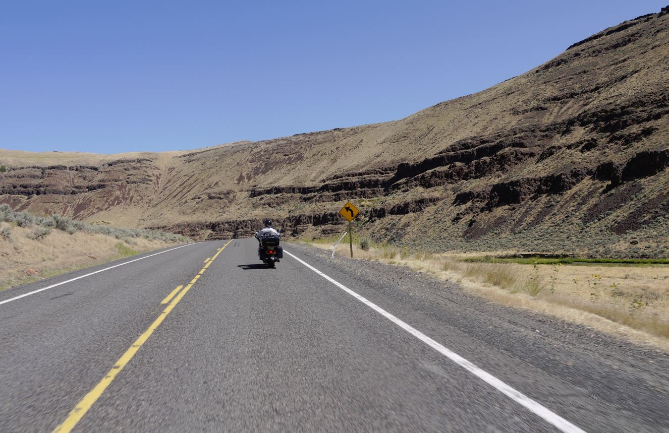 Nous récupérons nos bécanes dans le parking de l’hôtel et partons par la 84 faire un tour à la concession High Desert. Nous reprenons ensuite l’I-84 vers l’ouest, Phil devant… Une cinquantaine de miles plus loin, à Ontario, Phil, Jim et Dom, tels des Pieds Nickelés sur des engins vibrants et rugissant, passe à fond les manettes devant la sortie pour Vale et la 20. Fred et Dick, parfois plus observateurs, sortent de l’Intersate et piquent vers le sud-ouest, comme prévu.