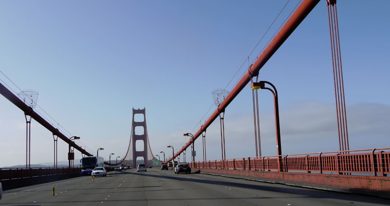 Dans la fraîcheur, quittant les collines des vignobles teintées d’ocre et de rose dans la soleil levant, nous rejoignons le flot des banlieusards de la 101 qui descendent travailler dans la baie. Nous nous faufilons habilement dans les embouteillages, du moins pour ceux qui ont l’habitude de conduire à Genève, pour atteindre le Golden Gate Bridge, dégagé de tout brouillard. Peu après Presidio, alors que nous roulons sur la 19ème Avenue qui est également la Highway 1, donc la bonne direction, Phil s’arrête à un feu orange (pour une fois !) et dit à Fred qui vient s’arrêter sur sa gauche : « On tourne à gauche ». Sur ce, lorsque le feu passe au vert, il tourne à droite ! Fred continue tout droit. S’ensuit une certaine confusion, les uns s’arrêtant, l’autre faisant le tour du pâté de maisons sans voir les premiers qui eux font des gestes au second qui repart tranquillement sur la 1 et le sud, voie logique.