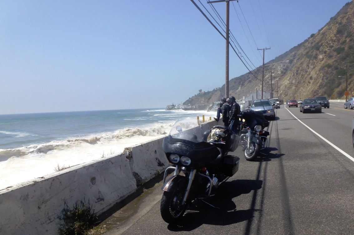 Ensuite, nous partons en taxi pour Santa Monica pour faire quelques emplettes, profitant d’un dollar historiquement bas. Puis, après un apéro dans une sorte de bar à tapas, nous traversons la rue pour aller dîner au Sushi Roku d’une débauche de sushi et sashimis. Retour en taxi après un dernier verre sur Ocean Boulevard. On se sent un peu orphelins de nos bécanes !