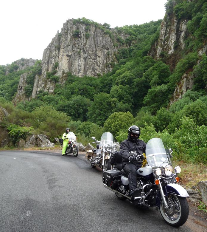 Le magnifique tour prévu à travers la France en direction de l'Espagne (ci-dessus) n'a pas pu se concrétiser à cause d'empêchements de dernière minute chez certains Tell's (version officielle). Toutefois, le noyau dur, les vrais de vrais, nous sommes partis affronter les éléments et du lundi 30 mai au jeudi 2 juin, la crème des Tell's a traversé les merveilleuses contrées du centre de la France (Auvergne) sous un ciel couvert mais avec de très bonnes sensations. En effet, des routes splendides au milieu des sommets volcaniques, des lacs sauvages et des forêts humides nous ont procuré un plaisir intense malgré la fraîcheur matinale (4 degrés mercredi par ex.). En fait, dès mardi le temps s'est rafraichi avec un thermomètre qui s'est approché des 3 degrés alors que lundi nous avons roulé sous 25 - 27 degrés, mais par chance nous n'avons eu que peu de pluie en roulant et notre équipement d'hiver nous a permis de survivre sans problème à ce climat d'automne. Notre nouveau boss pour l'occasion, "dick", a fait un travail de pro avec les cartes et son TomTom de compétition. BRAVO et merci ! Quelques clichés se trouvent sous le menu "sorties des Tell's" !