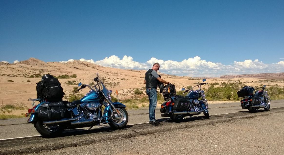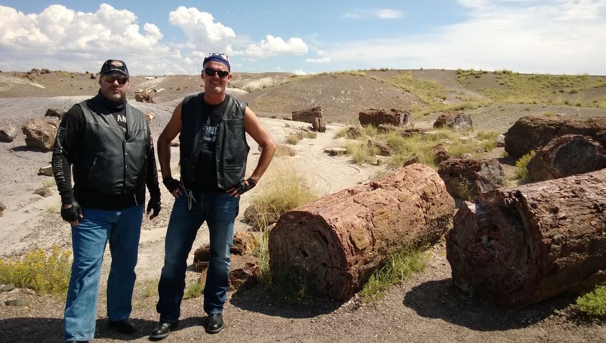 Au retour, Pat signifie à Dom que sa lumière arrière ne fonctionne plus du tout (lampe et frein). Réparation à venir dans un prochain épisode ! Cette étape était assez longue et éprouvante, mais n'avions pas d'autres alternatives à rejoindre l'Arizona pour monter sur Flagstaff et enfin découvrir les splendides paysages sauvages et la magie des routes de l'Ouest.