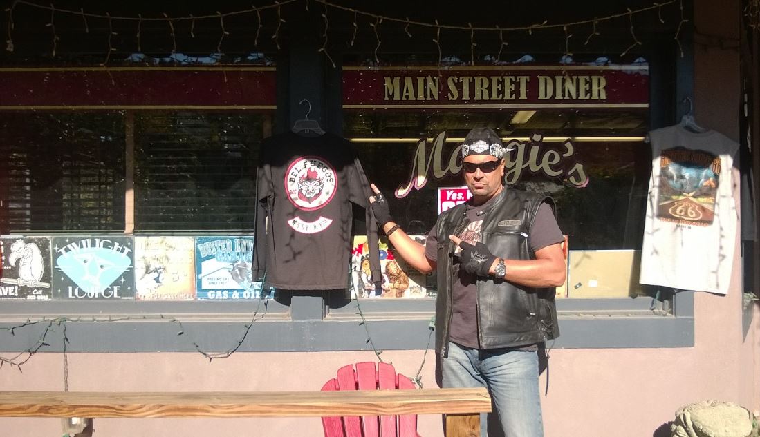 En 10 minutes accrochons la fameuse 14 direction San Antonio. Sur la route nous faisons une halte obligatoire dans le fameux village de Madrid pour visiter le shop de Maggie's diner. Endroit mythique ou le film "Wild hogs" (en français "bande de sauvages") a été tourné il y a quelques années. Accueillis par une vieille "anglaise", nous faisons quelques emplettes pour ramener quelques souvenirs dans nos foyers respectifs.. slip sexy pour Dom, t-shirts des wild hogs et des del Fuego pour PX et quelques babioles diverses.. Pat dévalise le magasin pour sa fille. Après une bonne demi-heure et quelques clichés souvenirs, reprenons la route dans une ambiance sympathique le long d'une route au milieu des cactus et des petits villages typiques (mexican style).