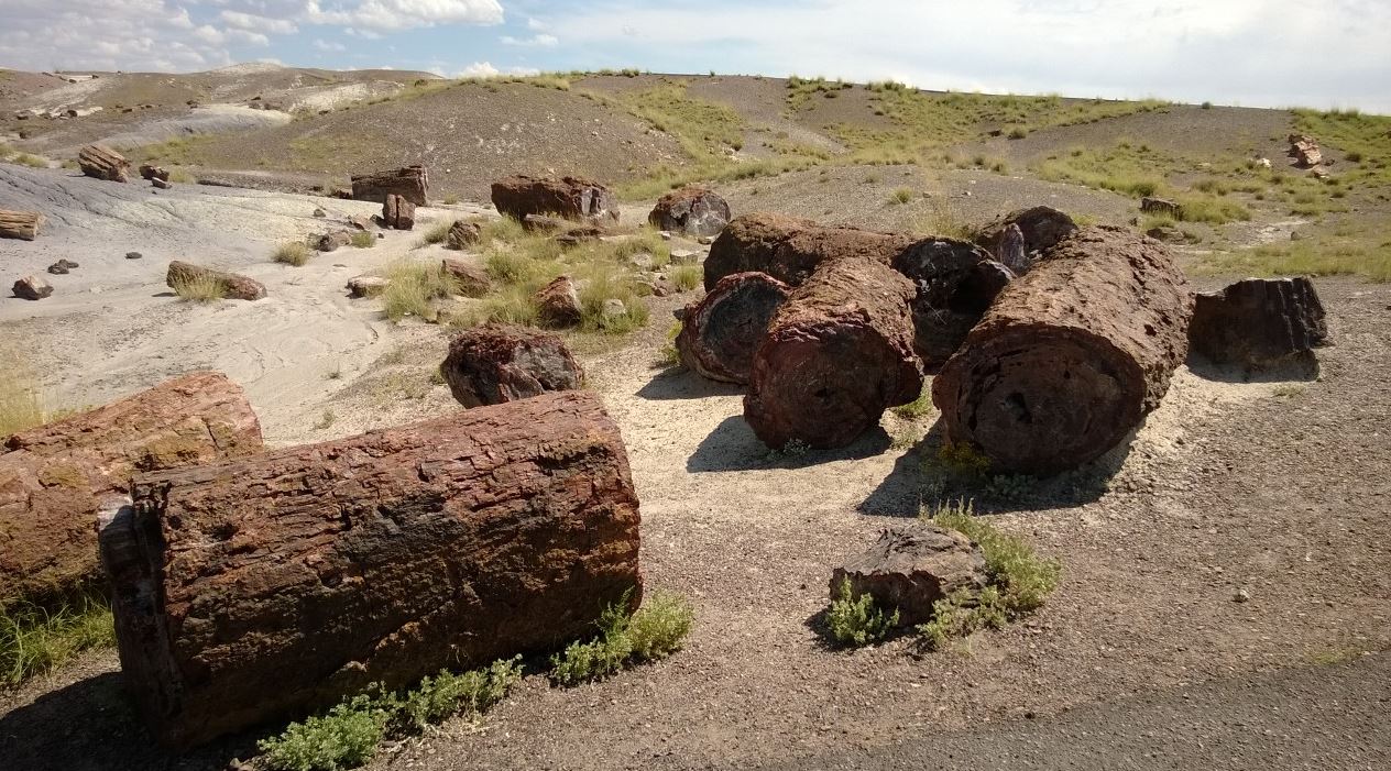 Après cette halte culturelle nous partons à vive allure pour rejoindre Petrified Forest par la 180. Nous visitons le site et découvrons ces étonnants troncs pétrifiés depuis des milliers d'années. Des troncs d'arbres à l'aspect d'origine mais en marbre massif.. INCROYABLE...