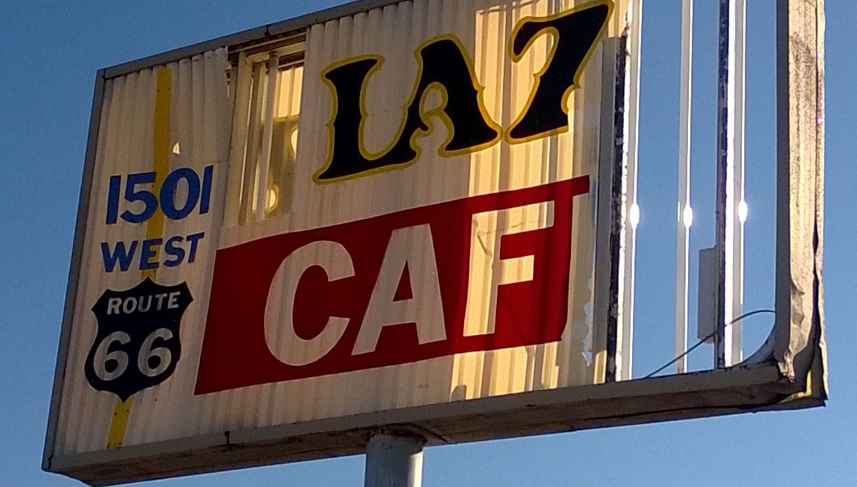 Continuons ensuite sur la route 66 le long de la voie de chemin de fer ou les convois de trains monstrueux nous accompagnent jusqu'à la ville minière de Ludlow ou nous descendons un hamburger avant de prendre la 40 pour rejoindre Barstow ou nous passerons la nuit.