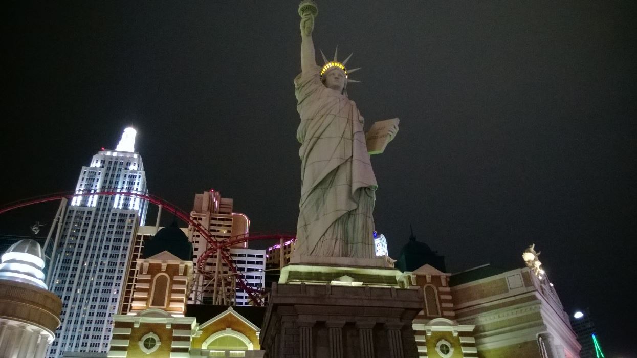 Finalement, reprenons la 40 pour atteindre la 95 ou nous traversons un orage assez violent mais sans faire les lopettes et en restant dans les tenues légères. Sous la pluie, nous coupons par la 163 pour attaquer la 95 à nouveau, direction La Vegas. Après quelques miles nous commençons tranquillement à sécher et arrivons dans la ville de toutes les folies en fin d'après-midi par un temps ma fois assez clément et doux. Arrivés dans la banlieue, PX prend le "lead" et nous amène à l'Hôtel "New-York New York" en quinze minutes chrono... Sommes vraiment bluffés par son sens de l'orientation et le félicitons maintes fois pour cette entrée sans faute et sans perte de temps...