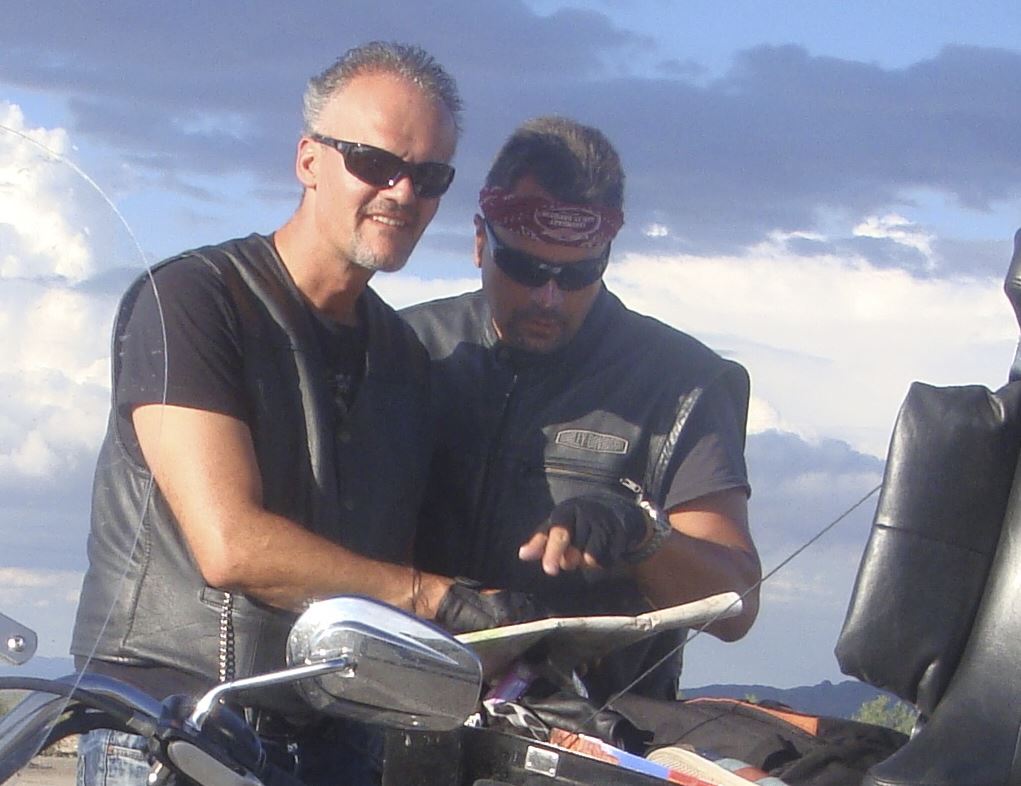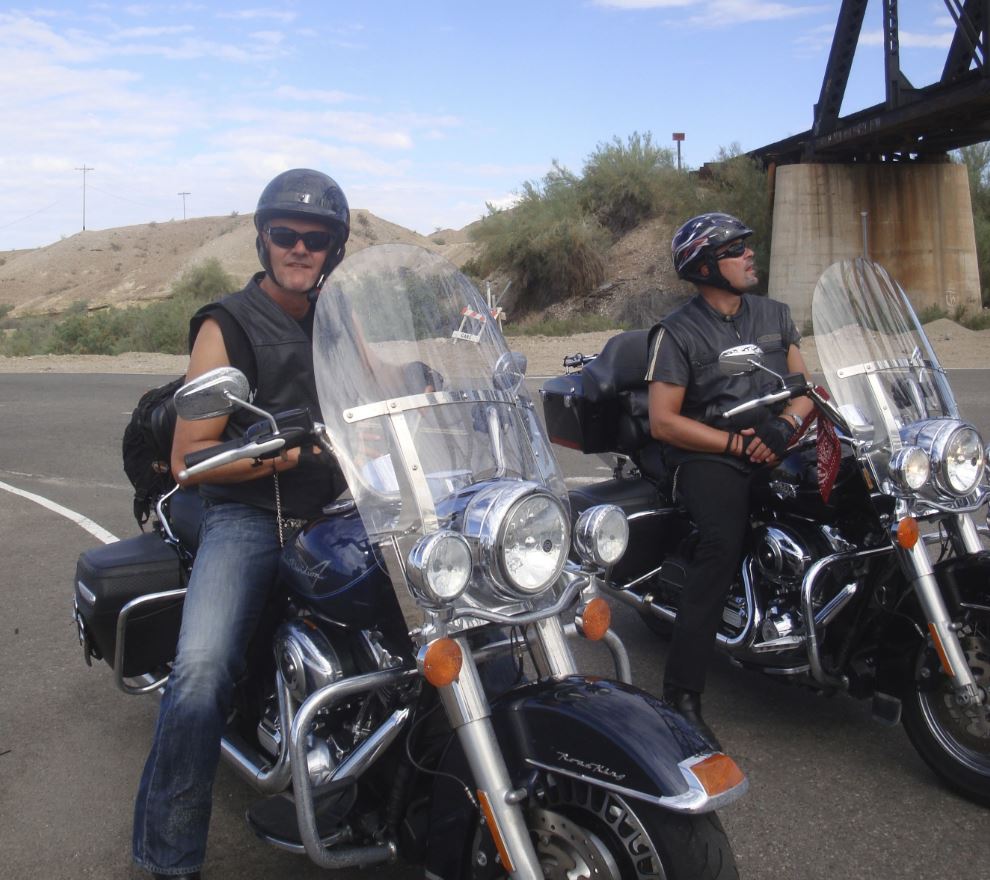 Laissons tomber les pèlerines et traversons sans faute la belle ville de Phoenix pour retrouver la 60 direction de Wickenburg et jusqu'à Brend our nous prenons la 10 pour atteindre Blythe (CA). Nous perdons PX sur la freeway après le passage du check-point pour la Californie. PX devait sentir l'écurie car il disparu dans l'horizon aussi vite que speedy Gonzales. Dom et Pat prennent la première sortie, se tapent la rue centrale interminable du bourg pour tomber sur le premier BW et prendre les chambres. Attendons 20min. que PX retrouve la bergerie et après une franche poignée de mains virile, passons dans la piscine de l'Hôtel pour se rafraîchir après une belle journée authentique et variée.. une journée de vrais bikers.