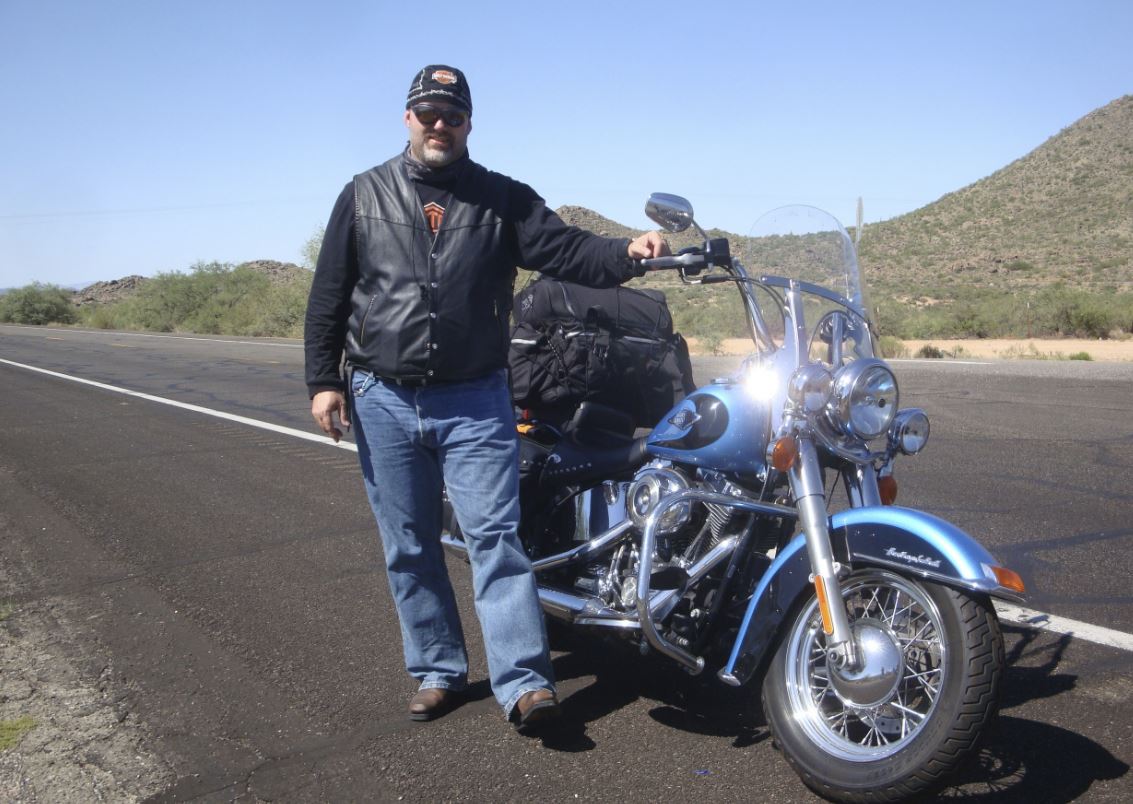 Après un petit déj minable malgré le prix de la chambre, départ via la 5 et ensuite la 8 direction Phoenix pour une longue traversée du désert et surtout de chaleur (env. 40 degré à l'ombre). Malgré tout, les 100 premiers miles sont plutôt sympas dans la fraîcheur du matin jusqu'à une altitude d'env. 1500m. La route se faufile au milieu de jolies collines avant de redescendre dans la vallée et dans les plateaux désertiques sous une chaleur accablante. Nous fonçons jusqu'à Gilda Bend (sans oublier une pause fraîcheur) ou nous bifurquons sur la 85 jusqu'à la 10 pour notre destination dans la banlieue de Phoenix, à Glendale. En reprenant justement la 85, Pat aperçoit une concession HD au bord de la freeway et dépasse tout le monde pour nous le signifier. Nous sortons à la prochaine EXIT pour comprendre sa manoeuvre.... Il voulait faire demi-tour pour faire son "shopping" de gants sans doigts lui faisant encore défaut. Après une concertation à 3, il fut le seul à vouloir faire marche arrière par 40degrés et la majorité décida de continuer. Mal nous en a pris, il parti devant à toute allure un peu vexé malgré la délibération démocratique.. Nous rassurons malgré tout le lecteur, après une nuit douce dans la même chambre que Dom tout rentra dans l'ordre rapidement :)