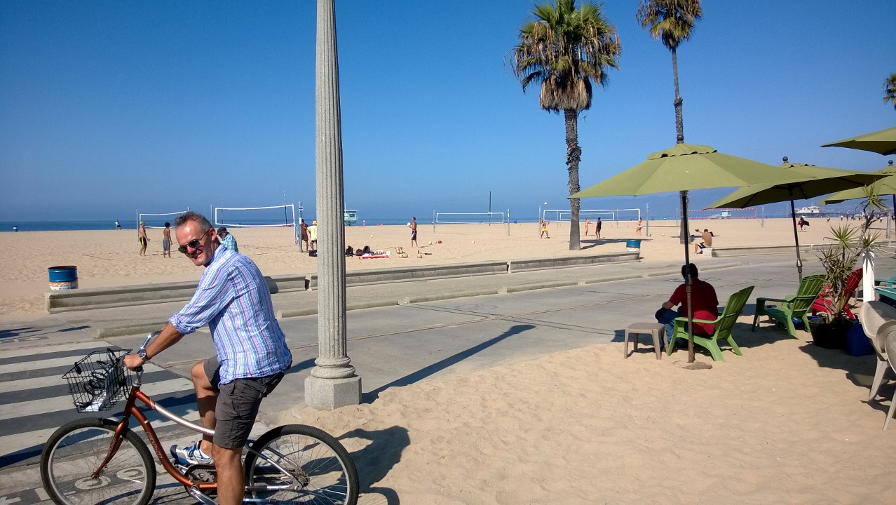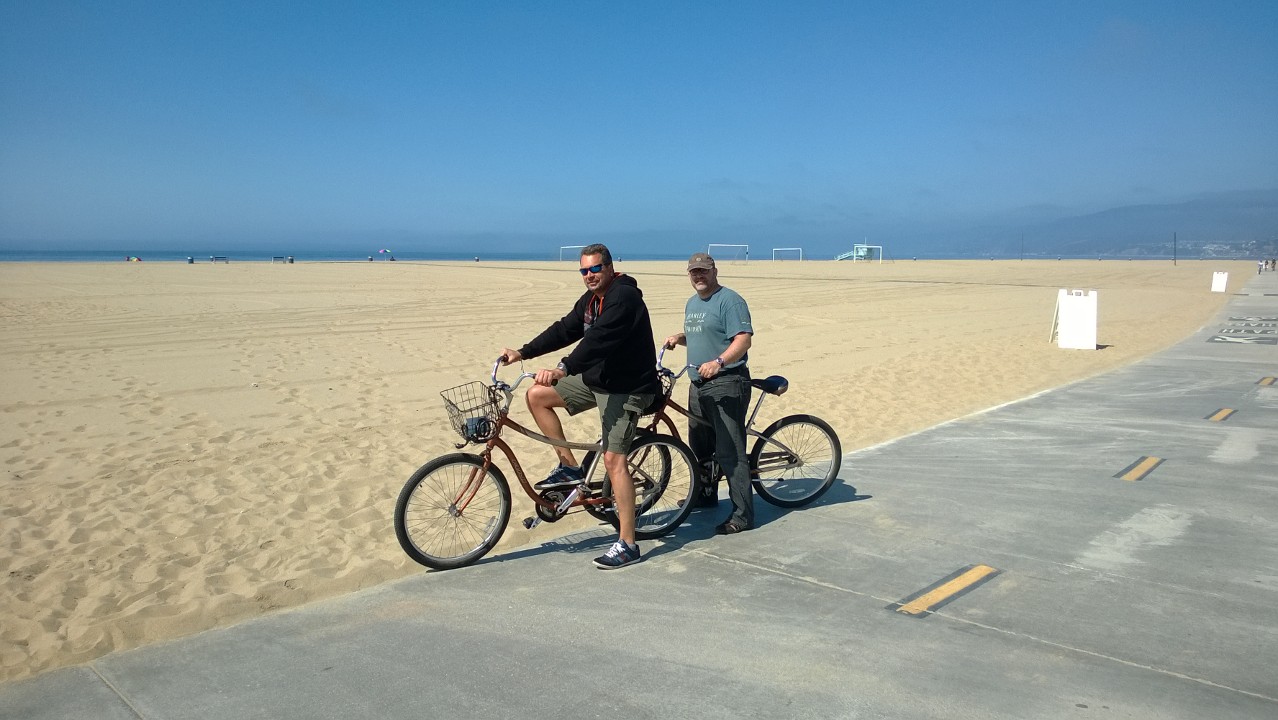 Jeudi 12 septembre, nous occupons notre journée en louant des vélos à l'Hôtel et partons sur le bord de mer tôt le matin pour un ride d'une autre dimension. Dom n'est pas top (mal au dos) et hésite à enfourcher la bécane de lopette, mais fort d'un remède de cheval ordonné par PX, il se lance quand même dans l'aventure du dernier jour sur sol US. Finalement, la matinée fut fort agréable, nous prenons le café / croissant sur Santa Monica beach et revenons à l'hôtel vers 13h00 pour fermer nos valises et préparer le déplacement pour l'aéroport.