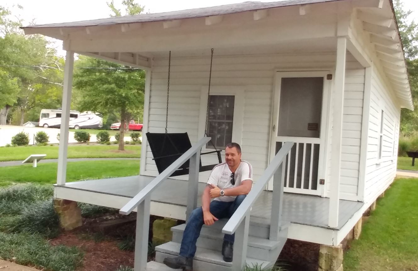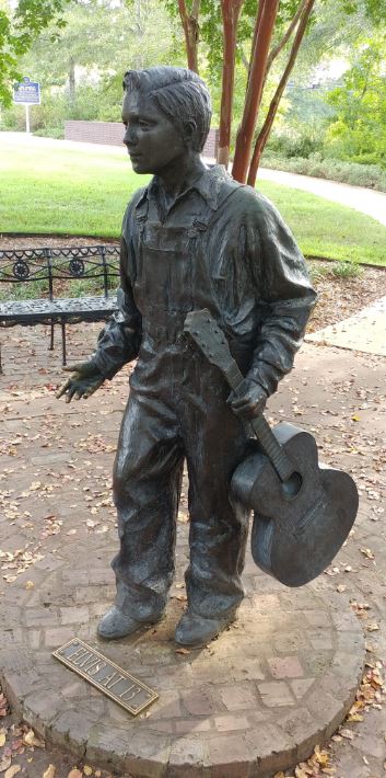 Grosse journée niveau KM en ce jeudi ensoleillé en direction de Tupelo, ville natale d'Elvis Presley. Sortie de New Orleans assez compliquée, car longue avenue avec croisements et feux à répétition avant de retrouver une route normale. Traversons un bras de mer sur une route posée dans l'eau et sur plusieurs miles, assez impressionnant, mais très utile pour rejoindre l'autre rive. Nous arrivons assez tôt à Tupelo ou nous rejoignons directement le site ou le King a vu le jour. A notre grande surprise, nous tombons assez rapidement dans un joli quartier de villas populaires, sans chichi et assez surpris également de ne pas retrouver le "Disneyland" de Memphis. En effet, une grande place de parc avec la maison natale originale, posée au bord de la route et tout à fait accessible sans aucune contrainte. Le site est assez vaste, beaucoup de terrain dédié à la mémoire du chanteur, deux chapelles et un musée / ciné / boutique à côté de la modeste maison (2 pièces). Nous prenons les billets pour entrer dans la demeure ou une vieille dame nous accueil pour nous débiter l'habituel speech sur l'histoire du lieu mythique. Faisons ensuite un peu le tour du jardin pour lire les deux ou trois infos relatives à la période ou le King n'était encore qu'un gamin inconnu et repartons pour notre hôtel qui se trouvait à 10min de là.