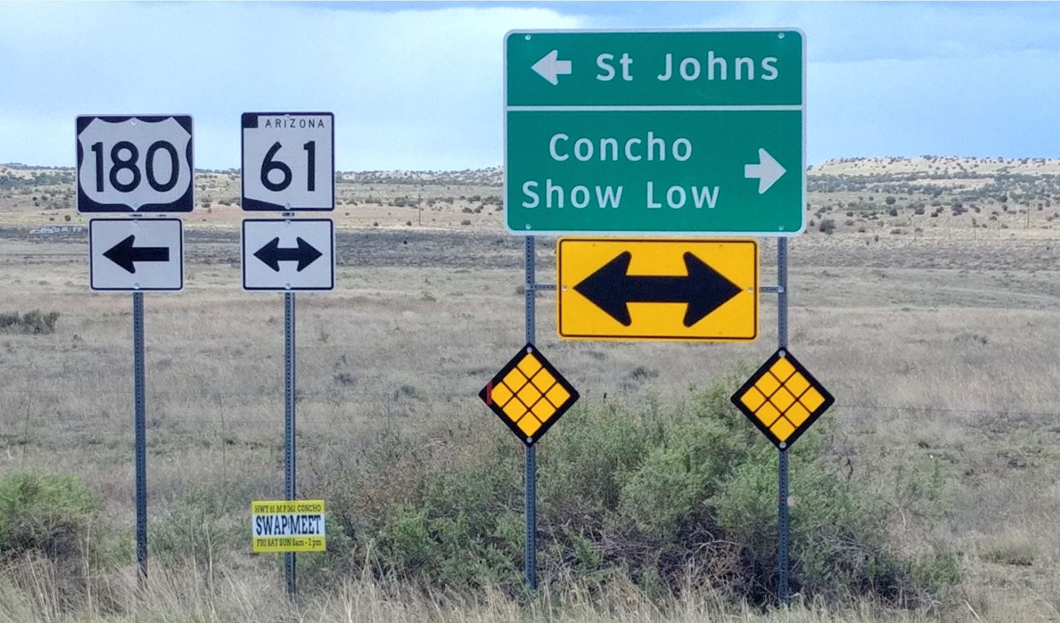 Nous reprenons la route sur St Johns, mais là encore, le temps se gâte au loin et nous voyons déjà de gros orages noirs et méchants se diriger dans notre direction, ou plutôt nous nous dirigeons vers eux. A une intersection, nous prenons la décision de prendre à droite direction de la ville de Show Low que nous avions déjà traversée en 2008. Nous abandonnons donc l’itinéraire prévu sur St Johns. Nous évitons la pluie et à priori, allons vers un ciel bleu et clément. Mais après quelques minutes, notre direction pourtant correcte, nous amène vers ce qui semble être un temps couvert et très foncé. Finalement, par chance nous arrivons sur Show Low juste après le déluge et la grêle, le temps se lève et nous prenons notre hôtel, le Holiday inn Express ou une jolie hôtesse nous accueille avec un sourire et des yeux ravageurs qui ne laissent aucun de nous indifférents.