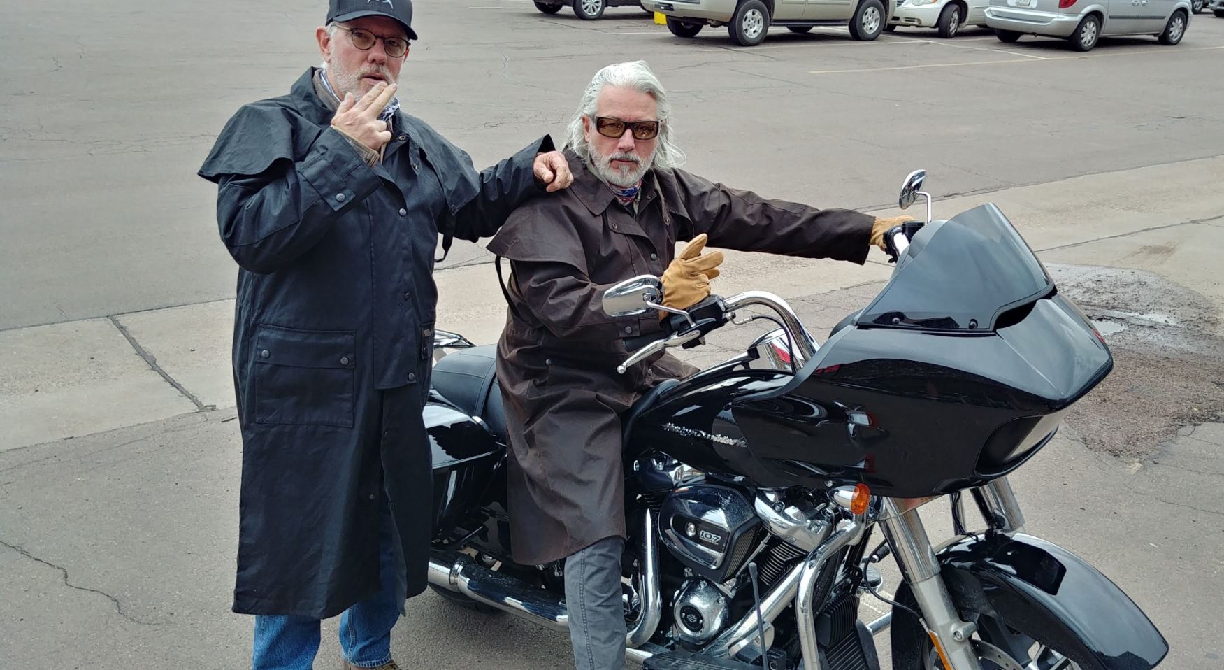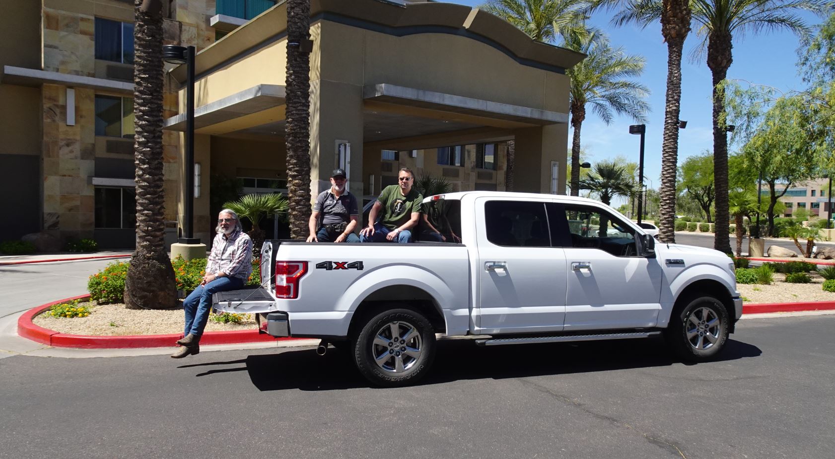 Nous sortons pour rendre nos bécanes à la concession et en partant, Dom voit un pick-up Ford F150 v8 dans son rétro avec un type nerveux au volant qui klaxonne plusieurs fois. Arrivés à la station-service ou Dick et Dom refont le plein avant de rendre les motos, le gros pick-up se gare à côté de la Harley de Dom et surprise, c’est Phil qui est au volant et qui fait la surprise à son pote. YEAHHH, l’Hyundai n’était en fait qu’une « fake news », ces deux bandits ont loué le 4X4 de ouf toutes options.