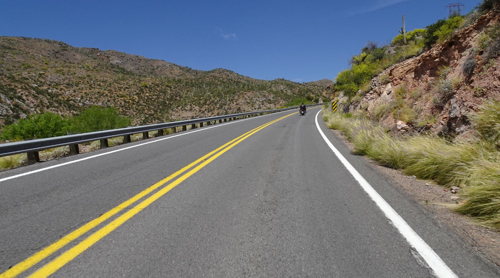 Reprenons vite le bitume pour passer un col, le « Gates Pass Trail », une route sinueuse et très agréable au milieu de milliers de Cactus tous plus beaux les uns que les autres. Descendons ensuite sur Tucson, AZ, et cherchons à nous restaurer au plus vite. Nous trouvons un restaurant Italien du nom de « Caruso’s » ou nous commandons une ou deux pizzas locales. Enfin une bouteille de rouge relativement correcte pour accompagner notre menu. Le retour en ville a du bon !