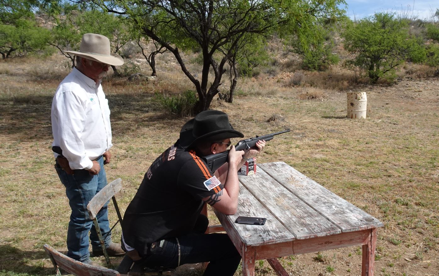 Vers 18h00, après avoir profité un court moment de la « cantina » en mode self service, la cloche du Ranch sonne pour annoncer le diner. Nous rejoignons la table ou plusieurs convives étaient déjà installés pour partager un repas très familial organisé par les 3 sœurs tenancières de cet endroit mythique vieux de plus de 250ans. Nous faisons connaissance de deux couples, dont un Anglais et son épouse Australienne, des anciens soixante-huitards et un vétéran du Vietnam avec sa nouvelle et plus jeune compagne. Le gars était incroyable et tenait une forme d’enfer. On nous présente également Ross, le cow-boy du Ranch, spécialiste des armes à feu. Nous prenons de suite RDV pour le lendemain matin car nous savons qu’il est possible de s’essayer à la manipulation d'armes à balles réelles dans la nature à quelques centaines de mètres de là.
