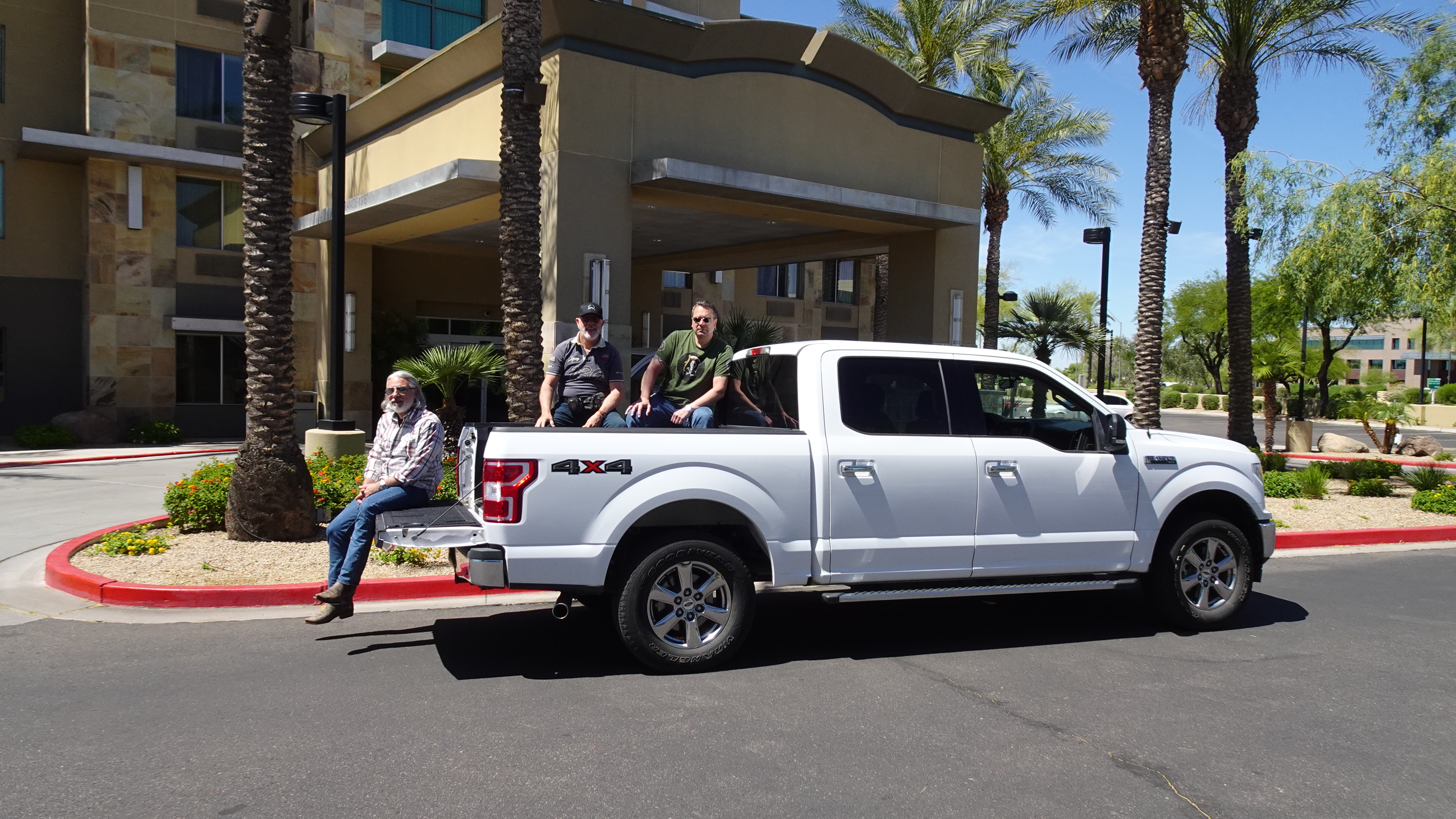 Finalement les deux vols se sont bien passés et Dom et Dick arrivent à Phoenix vers 22h00 heure locale, environ 3 ou 4 heures après Phil qui dormait déjà profondément. Toutefois, pris de remords, il avait pensé à remplir un peu le frigo et nous a laissé les deux lits « King Size » alors que lui dormait sur le sofa de notre suite ! Beau geste il faut l’avouer.