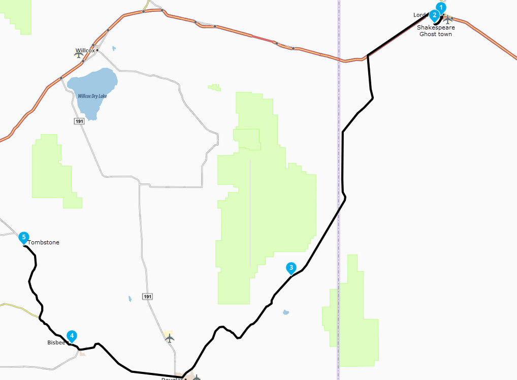 Après ce début de matinée heureux, nous reprenons la route direction le Nouveau-Mexique. Nous avons effectivement fait un court crochet dans cet état pour rejoindre le poste frontière avec le Mexique à Douglas. Toutefois, nous pensions pouvoir nous approcher du poste facilement mais finalement, l’idée était bonne, mais la faisabilité quasi impossible tant l’accès semblait ultra sécurisé. Nous décidons de continuer pour rejoindre la jolie ville de Bisbee et prenons le lunch dans le Bisbee’s Table. Après un repas copieux, nous prenons un vrai expesso au bar du coin ou notre serveuse Belge nous parle en français, venue quelques années auparavant dans la région pour y vivre.