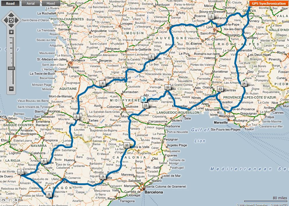 Le magnifique tour prévu à travers la France en direction de l'Espagne (ci-dessus) n'a pas pu se concrétiser à cause d'empêchements de dernière minute chez certains Tell's (version officielle). Toutefois, le noyau dur, les vrais de vrais, nous sommes partis affronter les éléments et du lundi 30 mai au jeudi 2 juin, la crème des Tell's a traversé les merveilleuses contrées du centre de la France (Auvergne) sous un ciel couvert mais avec de très bonnes sensations. En effet, des routes splendides au milieu des sommets volcaniques, des lacs sauvages et des forêts humides nous ont procuré un plaisir intense malgré la fraîcheur matinale (4 degrés mercredi par ex.). En fait, dès mardi le temps s'est rafraichi avec un thermomètre qui s'est approché des 3 degrés alors que lundi nous avons roulé sous 25 - 27 degrés, mais par chance nous n'avons eu que peu de pluie en roulant et notre équipement d'hiver nous a permis de survivre sans problème à ce climat d'automne. Notre nouveau boss pour l'occasion, "dick", a fait un travail de pro avec les cartes et son TomTom de compétition. BRAVO et merci ! Quelques clichés se trouvent sous le menu "sorties des Tell's" !